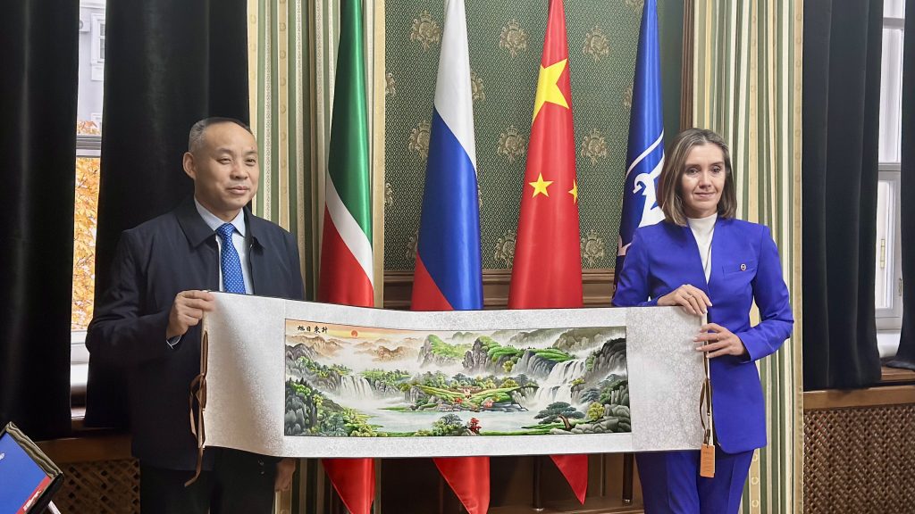随后,来宾们与喀山联邦大学领导进行了会谈,其中包括教学事务副校长叶卡捷琳娜·图里洛娃、外事处处长奥尔加·维尔希尼娜以及心理学与教育学院副院长沙米利·谢马尔达诺夫。